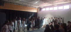 Le jeudi 12 juin dernier, les vingt élèves de l’atelier théâtre se sont produits à l’auditorium de l’ESCC de Maen Roch spécialement mis à leur disposition afin de clôturer leur saison d’acteurs et d’auteurs dramatiques.