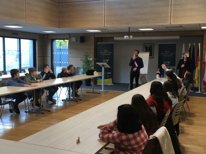 Après avoir partagé un petit-déjeuner au collège et fait connaissance au travers du jeu « Find someone who… », les élèves français et polonais ont pu assister à différents cours : l’occasion pour tous de s’interroger sur les systèmes éducatifs français et polonais. Les élèves, leurs professeurs et les chefs des établissements de Maen Roch et Dopiewo (Matthieu Caillat et Karolina Florczak) ont ensuite été accueillis à la mairie de Maen Roch : un moment convivial lors duquel les liens particuliers qui unissent les villes de Maen Roch et Dopiewo ont été soulignés. Les élèves sont ensuite partis à la découverte de Maen Roch et de la culture française au travers d’un challenge-photo.