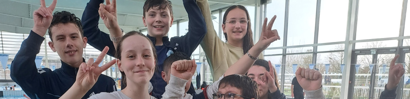 Section natation Mercredi 26 février 2025, 8 élèves de la section sportive natation du collège Angèle Vannier ont participé à une rencontre inter-collèges à la piscine de Combourg. Plusieurs épreuves étaient au programme, les nageurs enchaînants différents relais de vitesse, d’apnée